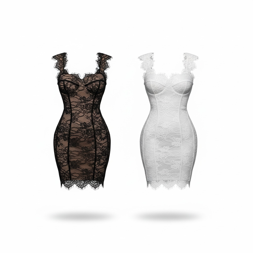 Корсетна сукня з кордового мережива, що поєднує виразну текстуру та чітку форму.